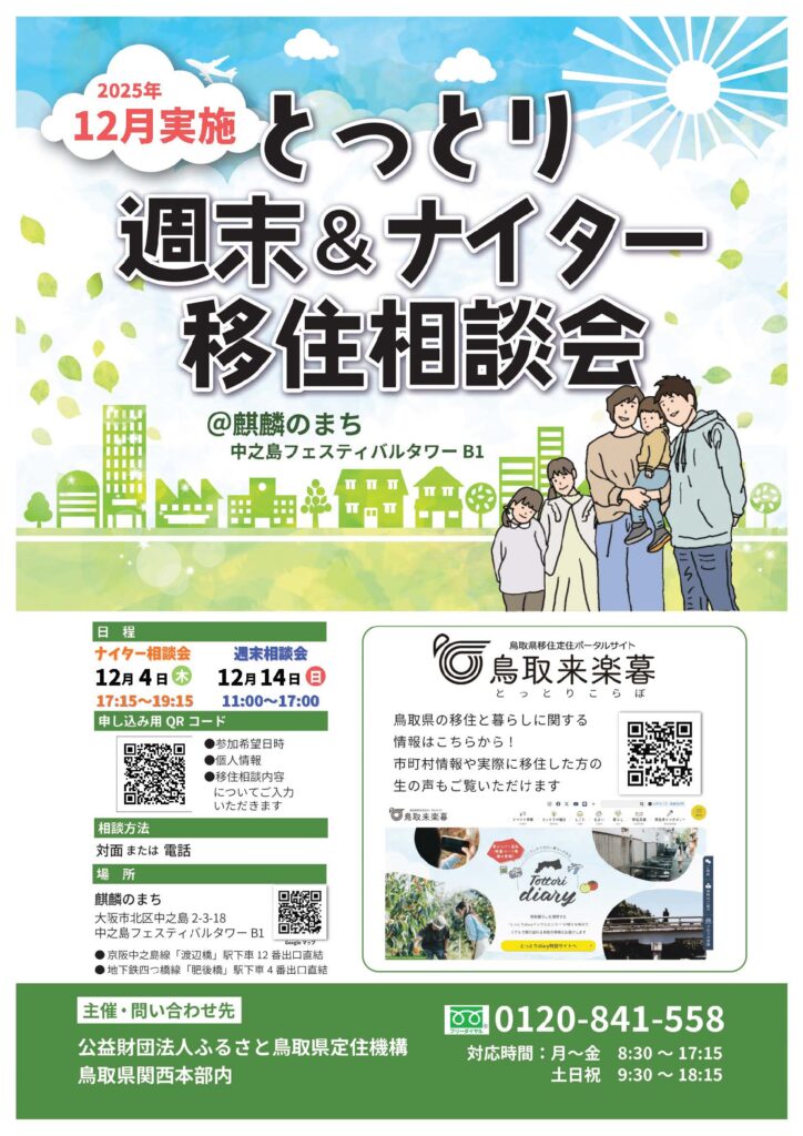 12月は夜間対応のナイター相談会も開催!鳥取移住についてこんなご相談はありませんか?